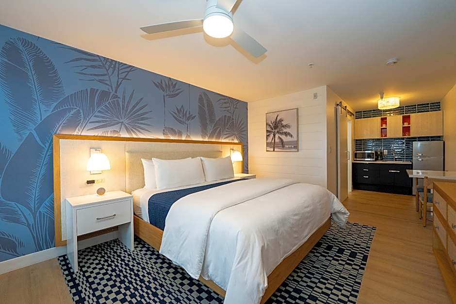 One King bed with pillow top mattress. 265 square feet. Located on all floors. Fully equipped kitchen with full-sized refrigerator, microwave, toaster, coffeemaker, and cookware. Two-seater dining table. Reading chair. 27-inch television with U.S. cable channels. Free wireless internet access. Bathroom with shower. Ceiling fan and louvered windows in addition to air conditioning.