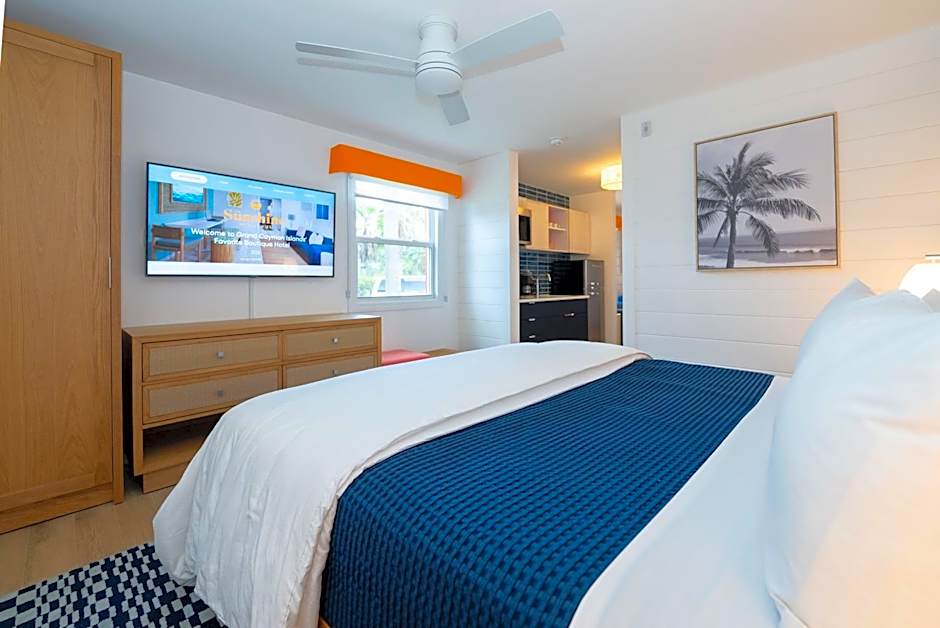 King size bed with sleeper sofa in separate living room - full kitchen and eating area. • Fully equipped kitchens in every suite • Plush tropical interiors • Well lit work area with dataports • Private voice mail • Coffee maker with gourmet coffee and teas • Ceiling fans and plantation shutters • Hair dryer - iron and ironing board • Wireless Internet available • Cable TV with premium movie channels - sports and financial news • Air conditioning individually controlled